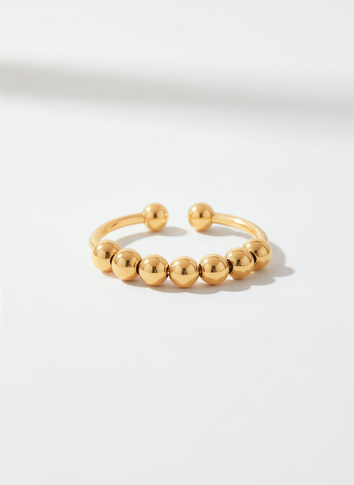 Der Yariel Ring bringt mit seinen gleichmäßigen Kugeln diesen frischen, verspielten Look, der gerade überall im Trend ist. Ein Design, das auffällt, weil es anders ist – modern, smooth und sofort präsent.