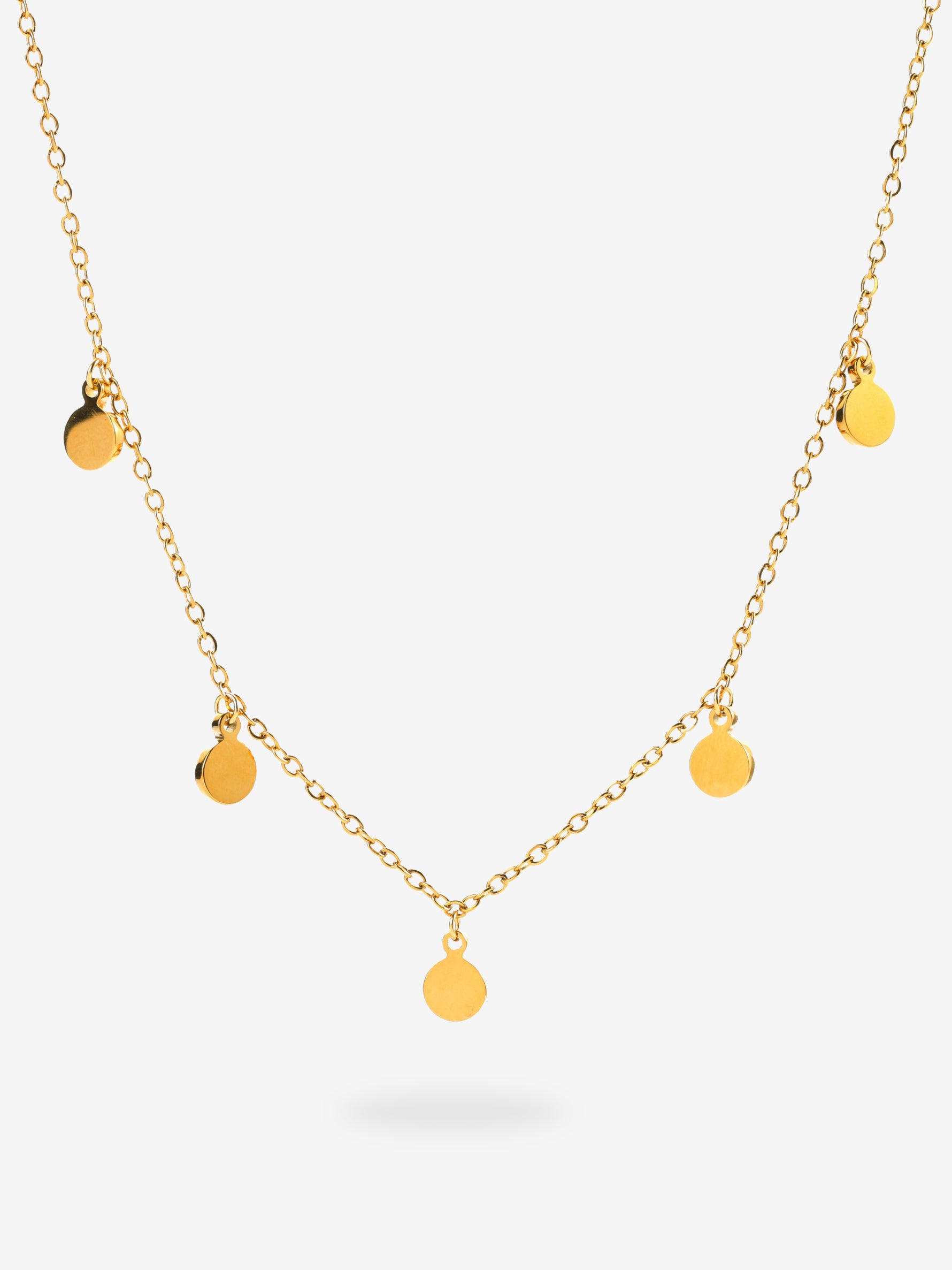 Die Kaira Kette bringt genau dieses leichte Funkeln, das jedes Outfit sofort lebendiger macht. Fünf kleine Plättchen setzen feine Lichtakzente und bewegen sich bei jedem Schritt mit dir – subtil, feminin, modern. Ein Piece, das man nicht erklären muss, weil es sofort wirkt.
